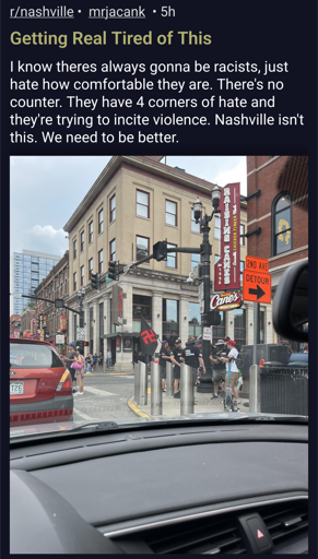 I think all that symbolism - Nazi symbols, Confederate symbols, that stupid christofascist heaven flag, etc - should be legally ruled as implied threats of violence that are essentially always open to defend against.