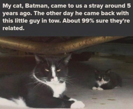 Wow this is incredible! I used to have a black and white cat that look very similar, and I also named him Batman!!