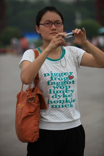 I wore one with “the white devil must pay for their crimes against glorious nation of China”. It looked sick under UV.