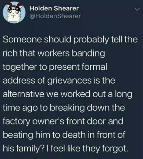 return2ozma@lemmy.world to Work Reform@lemmy.world · 2 years agoI think the rich need a reminder...lemmy.worldimagemessage-square1fedilinkarrow-up13arrow-down10